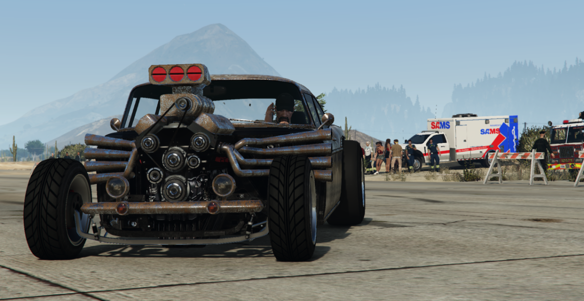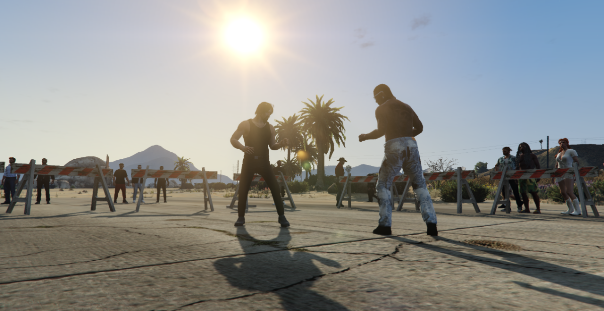 Letisko v oblasti Sandy Shores sa stalo miestom verejného podujatia organizovaného Republikánskou stranou, ktoré spojilo motoristickú kultúru a športové súboje v netradičnom formáte. Program akcie zahŕňal drag race preteky a zápasy v provizórne vybudovanom ringu, pričom obe časti prilákali početnú skupinu návštevníkov.